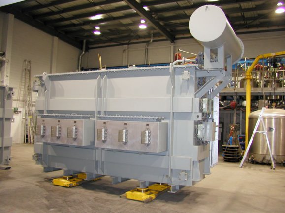 Transformers for 12 pulse and 24 pulse rectifiers. Star/Delta, interconnected star (zigzag) and polygon connections. Close coupling between secondaries is normal, loose coupling is also available. For 24 pulse systems, the interphase transformer can be designed and installed in the tank along with the two transformers. Secondary terminations can be arranged to align with rectifier connections. Duty cycle derating is available.